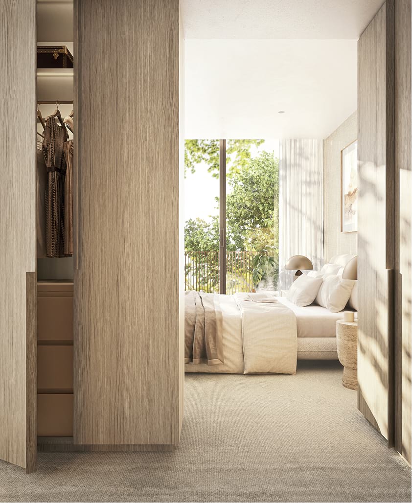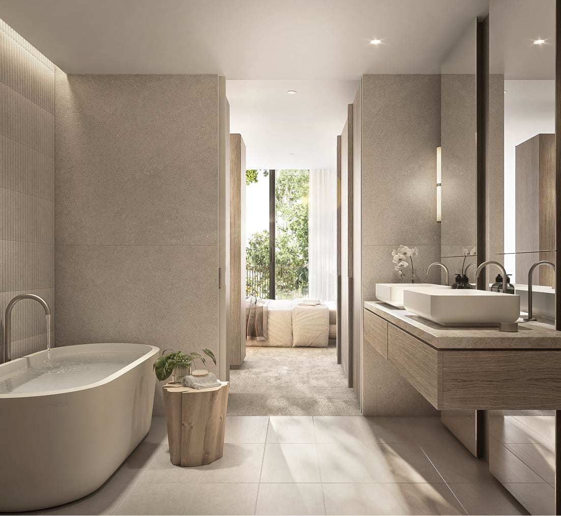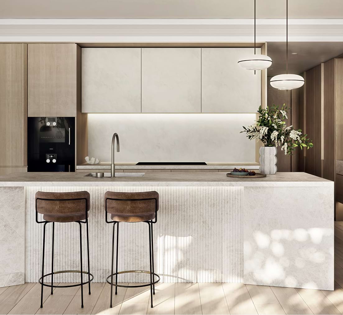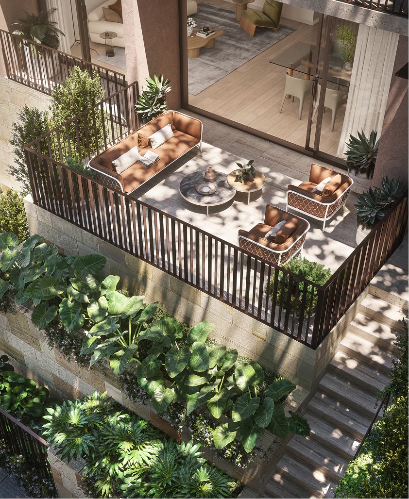 The double-storey Terraces offer private Walker Street entry and generous, house-like proportions. Inspired by North Sydney’s heritage streetscapes, their landscaped courtyards and elegantly crafted architectural details create a refined, private sanctuary where timeless architecture meets bespoke living.